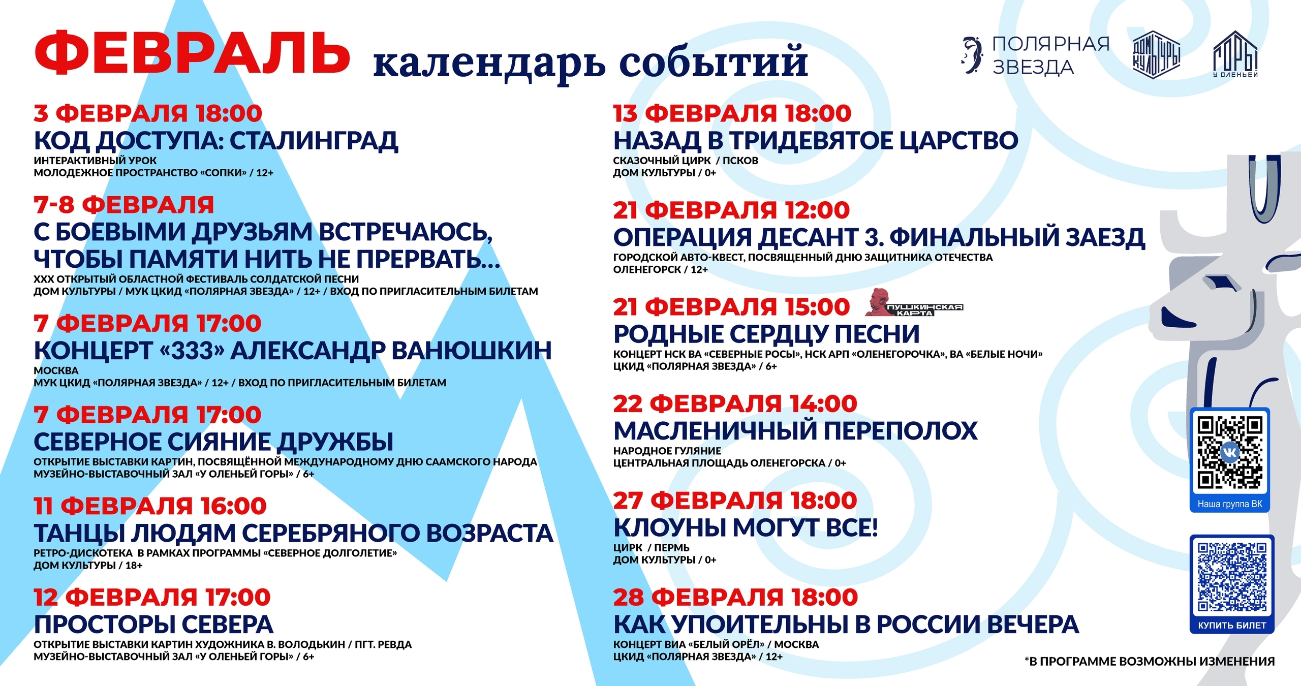 МУК ЦКиД «Полярная звезда» оставляет за собой право вносить изменения в программу.