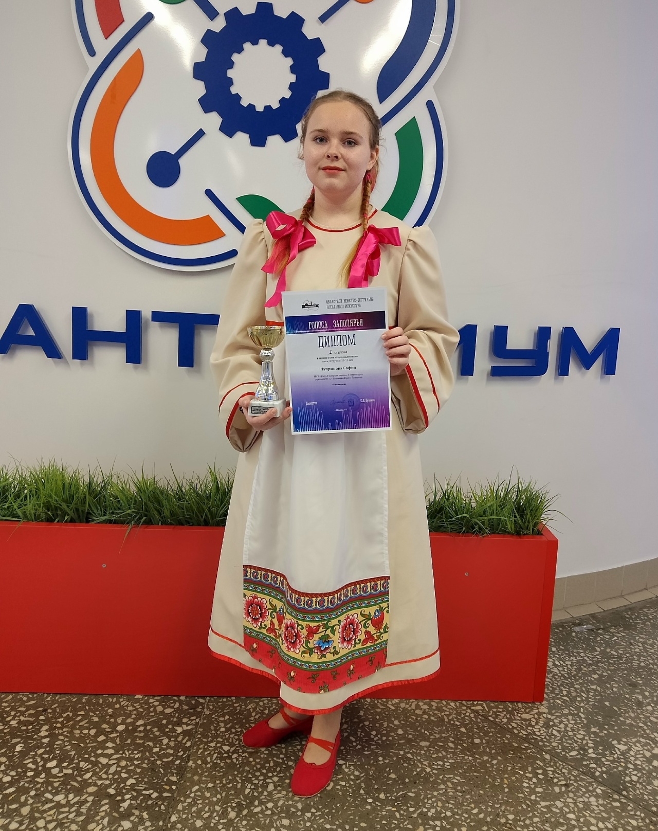 Диплом I степени в номинации "Народный вокал" в 4 возрастной группе завоевала София Чуприкова с композицией "Пташечка".
