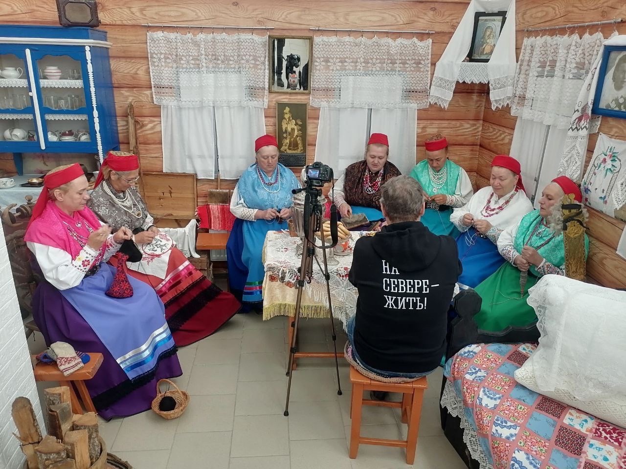 Пятый рабочий день начался с экстремальной поездки по пескам Кузомени, знакомства с дикими лошадками и увлекательной беседы со старожилами села. Учёным посчастливилось запечатлеть старинные поморские костюмы, повойник, расшитый жемчугом, предметы рыбачьего промыслового быта.Поморский хор села Варзуга (руководитель Вопияшина Наталья Николаевна) воочию продемонстрировал поморские хороводы. Участницы коллектива поделились воспоминаниями о календарных праздниках, приметами, рассказали об обычаях поморов. Очень интересной была встреча с жительницей с. Варзуги Мариной Аресеньевной. Она показала технологию обработки шерсти, прядения, узорного вязания, поделилась собранными материалами по технике вязания.Фольклорная экспедиция организуется при поддержке Правительства Мурманской области и Министерства культуры Мурманской области.