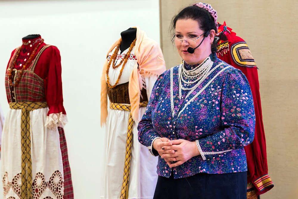 Лекция и выставка традиционных костюмов различных регионов России на примере коллекции музея народного быта и традиционных ремёсел «Рябиновый край», показ обряжения вызвали большой интерес слушателей лаборатории. Подготовила выставку и провела обряжение конструктор-модельер сценического костюма, руководитель клуба фланкировки казачьей шашкой «Эфес» Ольга Дмитриевна Соловьева.