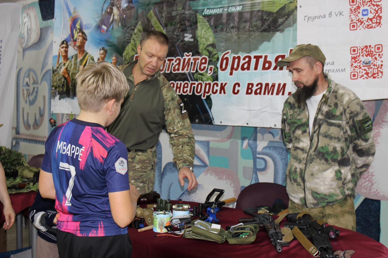 Также особенным вниманием у молодёжи пользовалась интерактивная площадка от общественной организации «Рокот 51». Активисты представили участникам образцы, изготавливаемого трудолюбивыми руками волонтёров оборудования "в помощь бойцам", и элементы тактического снаряжения, которое с радостью примерили на себя все желающие.