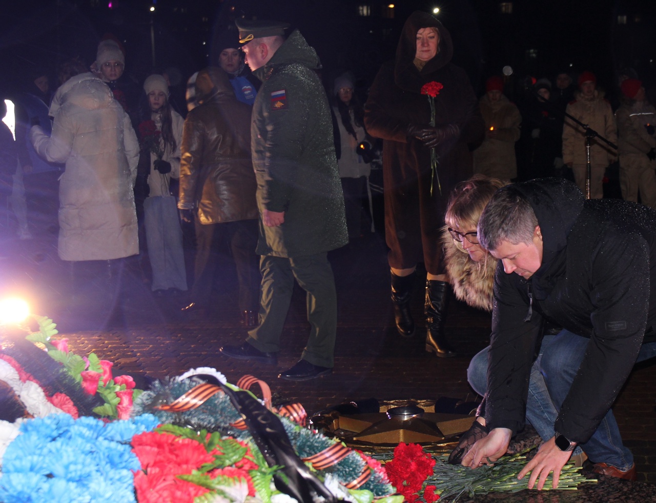 В завершение мероприятия первые лица города, ветераны, общественные деятели, представители молодежных патриотических объединений "Волонтёры Победы", юнармейцы Оленегорского местного отделения Всероссийского военно-патриотического общественного движения «ЮНАРМИЯ» и все присутствующие почтили память героев минутой молчания и возложили цветы к Мемориалу.