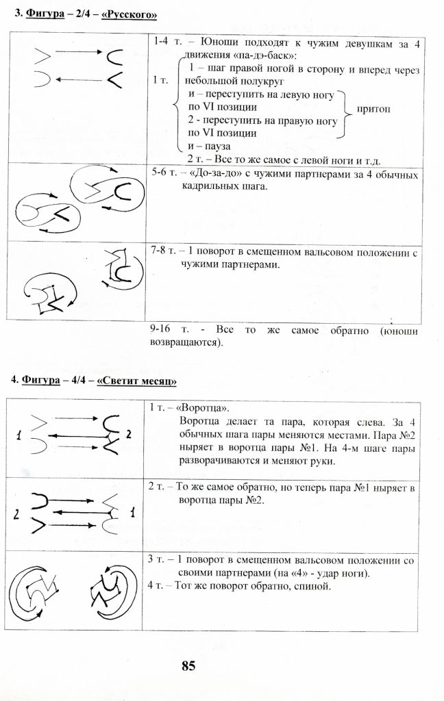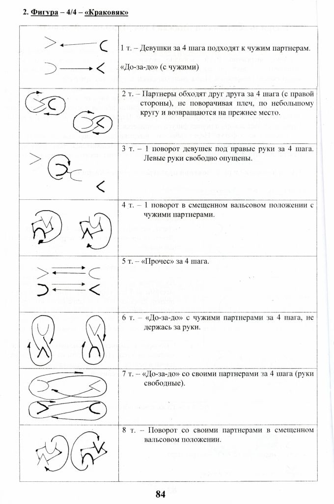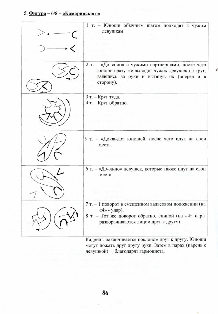 - Аннотация: Каждая из пяти фигур сопровождается определенной мелодией. Перед началом каждой фигуры выкрикивали номер каждой, но могли быть и просто паузы между фигурами. Исполнялась под популярные наигрыши: «Во лузях», «Краковяк», «Русского», «Светит месяц», «Камаринского».