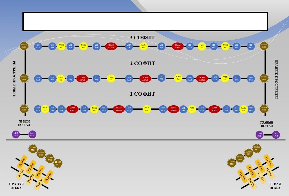 ***Дополнительное световое оборудование, декорации возможно монтировать только на дополнительных фермах через лебедки на колосниках.